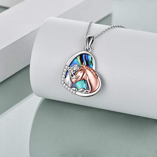 YFN Collana con Ragazza e Cavallo per Ragazze Gioielli in Argento Sterling per Cavalli Regali per Cavalli per Donne (Rose-Abalone)