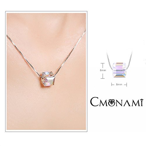 Collana, Regalo Di San Valentino Con Squisita Confezione Cmonami"Scintillio" Realizzata Con Argento Sterling S925, Ciondolo Cubo In Cristallo Raffinata Collana Di Gioielleria Per Donne