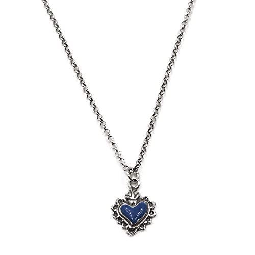 Collana Sacro Cuore in Argento Sterling 925 Smaltato Blu