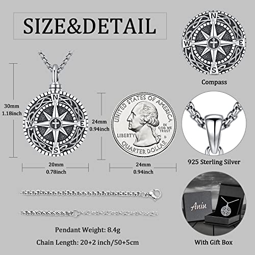 ❥ DETTAGLI DELLA COLLANA: Catena ciondolo urna argento: 30 * 20 mm (1,18 * 0,78 pollici), peso del ciondolo urna bussola: 4,7 g, lunghezza della catena regolabile: 50 + 5 cm (20 + 2 pollici). Un unico uomini collana urna, elegante e lucido, perfetto per mariti, fidanzati, padri e altri uomini.