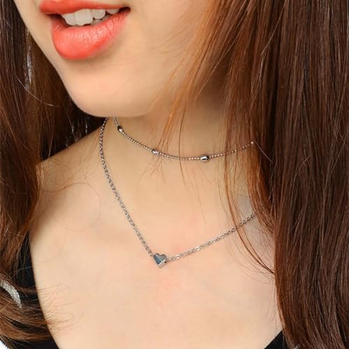 Collane con ciondolo a forma di cuore Boho a strati Prosy Collana girocollo in argento con catena di gioielli regolabili per donne e ragazze