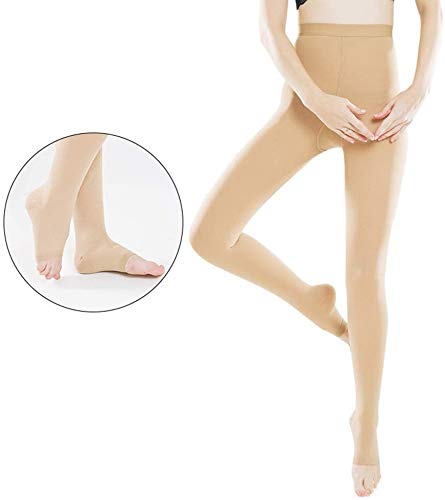 Collant a compressione per donne 20-30 mmHg Medical Gradient Support compressione collant prevenire coaguli di sangue e vene varicose Beige Punta aperta L