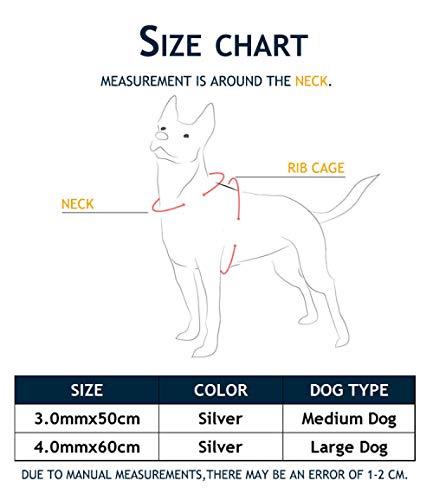 Collar per Cani Resistente Catena Collare a catena per cani Collare per cani regolabile in metallo Collana con doppio anello in argento per cucciolo Cane di taglia media per animali domestici-4.0mm