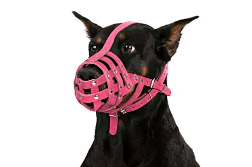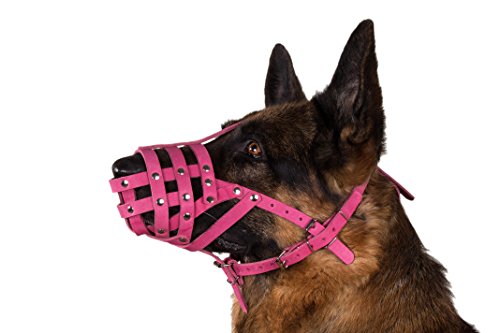 CollarDirect Museruola per cani pastore tedesco dalmata doberman setter cestino in pelle razze medie e grandi nero marrone (L, rosa)