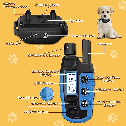 Collare Addestramento per Cani, Collare Ricaricabile con Portata di Controllo 1300m, 3 Modalità di Allenamento Efficaci di Suono/Vibrazione/Forte Vibrazione, Impermeabile IP67, Senza Scosse
