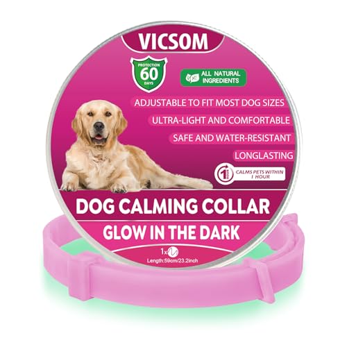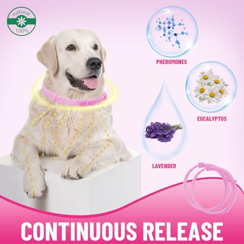 Collare Calmante per Cani, Luminoso Collare Calmante Regolabile per Cani, Collare Luminoso Calmo per Cani Naturale Feromoni Anti-Ansia, Impermeabile per Cani di Tutte Le Taglie 23.2In 1Pezzi Rosa