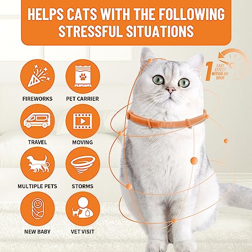 Collare Calmante per Gatti, Luminoso Collari Calmanti ai Feromoni, Collare Luminoso Calmante ai Feromoni per Gatti Naturale, Regolabile e Impermeabile per Gatti di Tutte Le Taglie 18.9In 1PZ Arancione