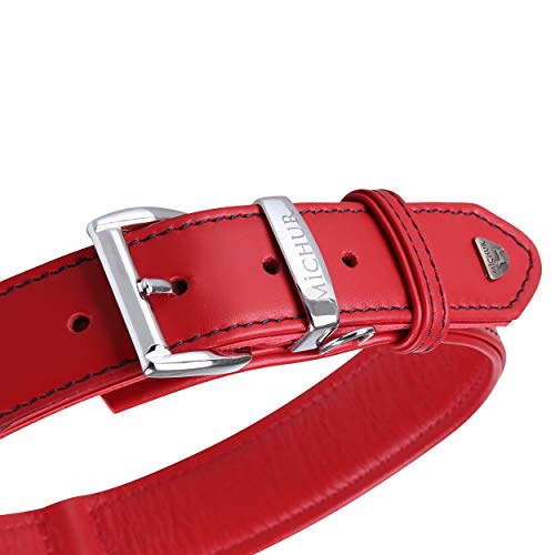 Collare per Cane MICHUR Classica Rosso in Pelle, Collare in Pelle per Cane, Colletto, Colletto in Pelle per Cani Nero, Pelle, Disponibile in Diverse Misure