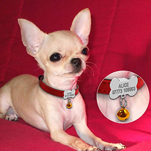 Collare di cane personalizzato Collare di chihuahua personalizzato per piccoli cani Collari per animali domestici imbottiti regolabili con campana per cani di piccola taglia media Cani-rosso-os