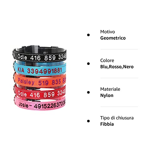 Collare Cane Personalizzato,Ricamo Personalizzato con Nome Dell'Animale Domestico E Numero Di Telefono In Blu, Nero, Rosa, Rosso E Arancione, 4 Taglie Regolabili, X, Piccola, Media E Grande