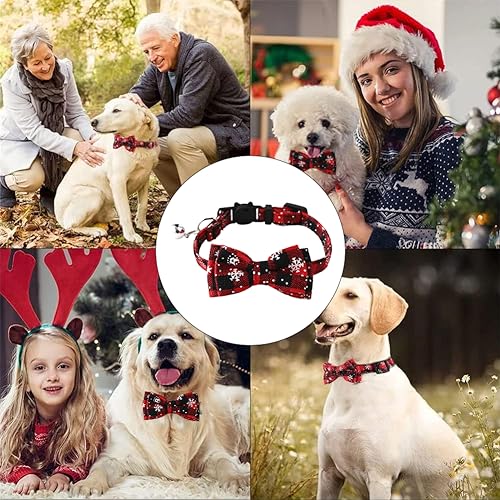Collare per Cani di Natale con Farfallino,Collari con Farfallino Natale Collare Regolabile,Collare per Cani con Fiocco Rosso,collare di Natale con Fiocco Regolabile,Collare Natalizio per Cani e Gatti