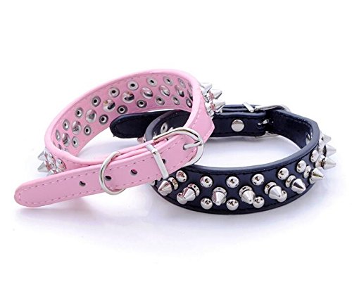 Collare per cani in pelle con borchie, larghezza 2,5 cm, protegge animali domestici audaci da altri morsi, per cani di piccola o media taglia (nero)