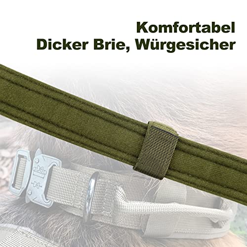 Collare per cani regolabile con maniglia di controllo Tattico per cani di taglia grande con fibbia in metallo, Collari per cani larghi 3,8 cm, Collare K9 Nylon M Verde