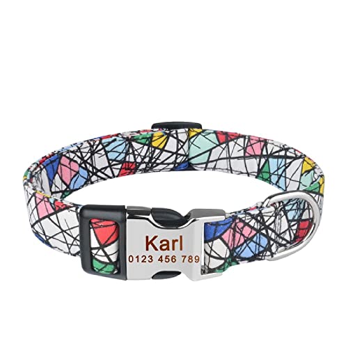 Collare per cani regolabile in nylon plaid unisex personalizzato personalizzato con incisione gratuita nome collare per cani Collari per cani di piccole dimensioni, Tangram bianco, XS