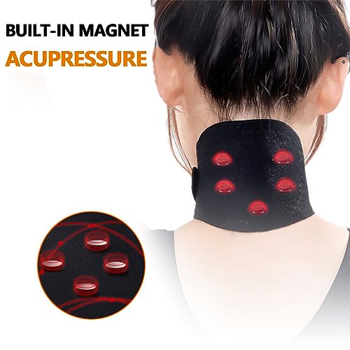 Collare cervicale auto-riscaldante con magneti: Questo collare cervicale auto-riscaldante con magneti offre un trattamento termico terapeutico per il collo, alleviando il disagio e offrendo un calore rilassante. Realizzato in tessuto SBR impermeabile, è dotato di 5 magneti integrati che applicano una massaggio statico ai punti di pressione.
