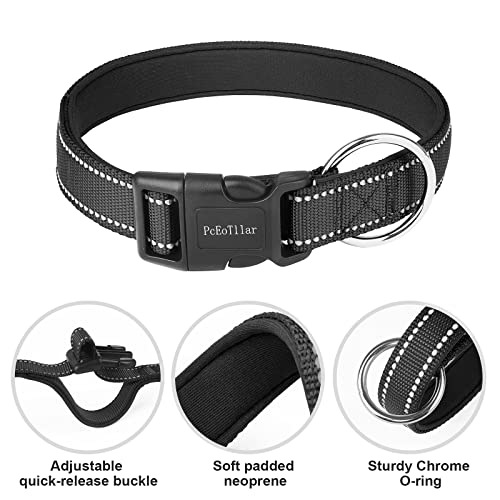 Collare e Guinzaglio per Cani, Riflettente Collare per Cani Morbido con Guinzaglio Regolabile 1,8 M con Manico Imbottito e Etichetta per Cani di Taglia Piccola, Media e Grande, Set Nero L