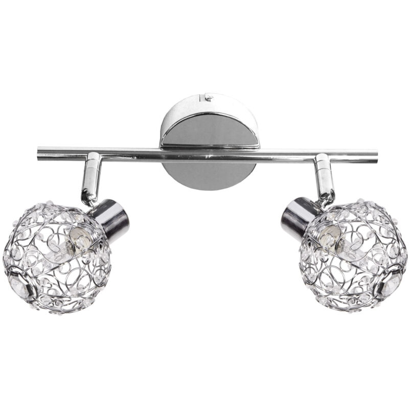 al set: lampada da parete, strip 3 e 4 e plafoniera 3 Materiale: paralume in metallo con perle acriliche, base in metallo Colore base: cromo Altezza: 17 Larghezza: 27 Profondità: 8,5 Dimensioni (altezza/larghezza/profondità): 17x27x8,5 Peso (netto): 0, 39 LED integrati: No Numero di sorgenti luminose: 2 Sorgente luminosa inclusa: Sì Numero di sorgenti x base: 2xG9