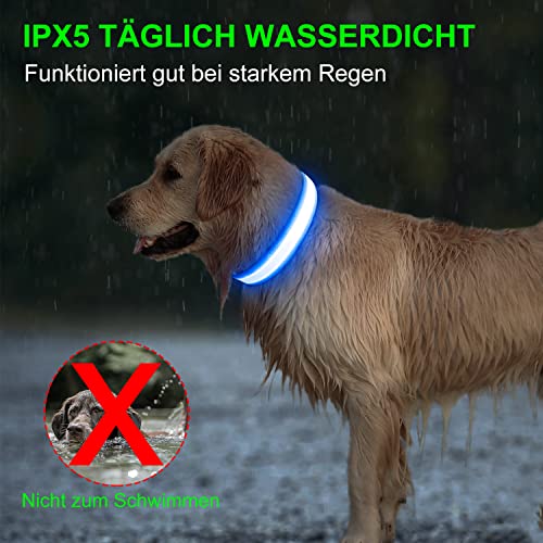 Collare Luminoso per Cani DQGHQME Collare Cane Luminoso Ricaricabile USB e impermeabile, Collare LED Cane Misura Regolabile e con 3 modalità lampeggianti per cani di piccola/media/grande taglia (Blu)