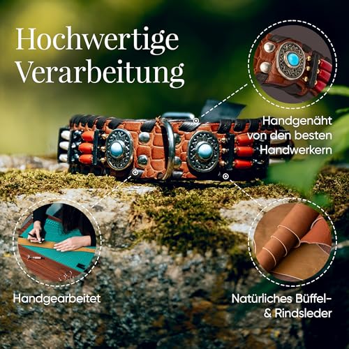 Collare MICHUR CARLOTA Collare per cani indiano Collare per cani in pelle marrone in pelle con pietre turchesi disponibile in diverse dimensioni