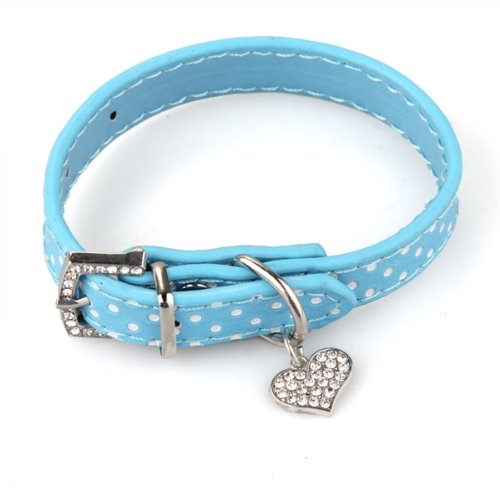 Collare Regolabile per Pet Animale Azzurro Pelle PU Cane Gatto Taglia XS