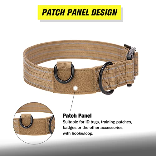 Collare riflettente per cani - Collare tattico per cani con doppia cinghia in nylon, regolabile, con fibbia in metallo a sgancio rapido per cani di taglia media e grande (nero)