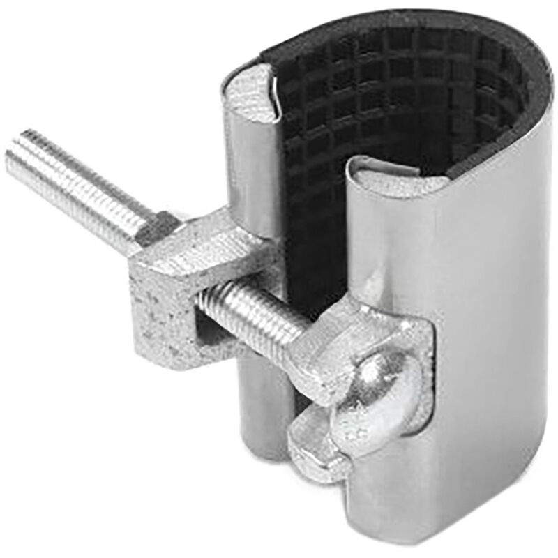 Indicato per sigillature permanenti di fori o piccole perdite su condotte in pressione convoglianti acqua e altri fluidi. Adatto per tubi in ghisa, acciaio, PVC. Corpo in acciaio, innesto rapido ad un bullone, guarnizione di tenuta in gomma NBR a profilo quadrettato.