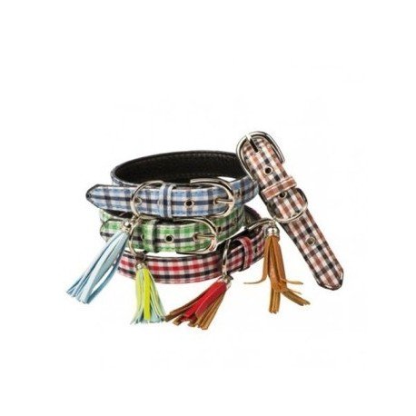 Collare Scozia con nappa - In ecopelle e cotone, abbinabile al guinzaglio, disponibile in varie misure e colori (Verde, 1x30 cm)