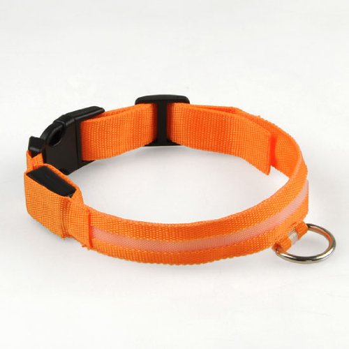 Collare di sicurezza per cani, lampeggiante, lampadina LED che illumina il collare, rende il vostro cane visibile al buio Collare di sicurezza per cani, lampeggiante, è dotato di lampadina a led (color arancio) con 4 modalità