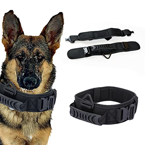 Collare tattico per cani di grandi dimensioni, collare per cani militare di larghezza 2,7 ", collare per cani regolabile, doppia fibbia in metallo con impugnatura morbida per l'addestramento del cane