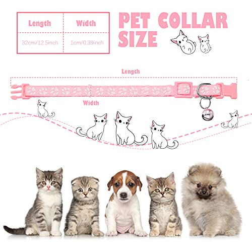 2 Collari per Parto con Campanelle Collari di Cuccioli con Campana Collari per Cani Regolabili in Poliestere Collari per Gattini con Motivo a Zampa Collari di Sicurezza per Pet, 2 Colori