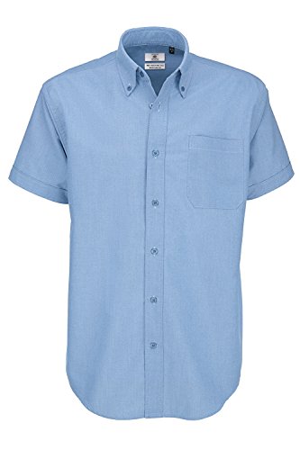 B&C Collection Camicia a Maniche Corte Oxford da Uomo Pulsante Formale - Oxford Blu (S)
