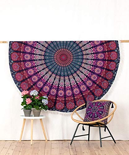 AVA Collections - Grande telo rotondo in cotone con mandala, motivo mandala, decorazione Yaga, tappetino da picnic per meditazione, 183 cm, J, 72