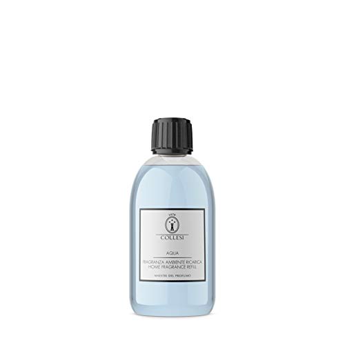 Essenza aqua (300 ml): leggera, fresca, impalpabile con note ambrate. Famiglia olfattiva: aromatica, zone di utilizzo: zona giorno, studio, ingresso.