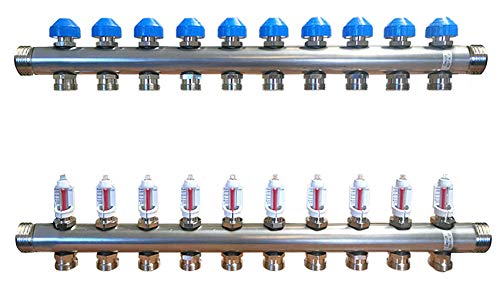 Collettore di distribuzione premontato per impianti radianti da 1" con derivazioni da 3/4" (10 vie)
