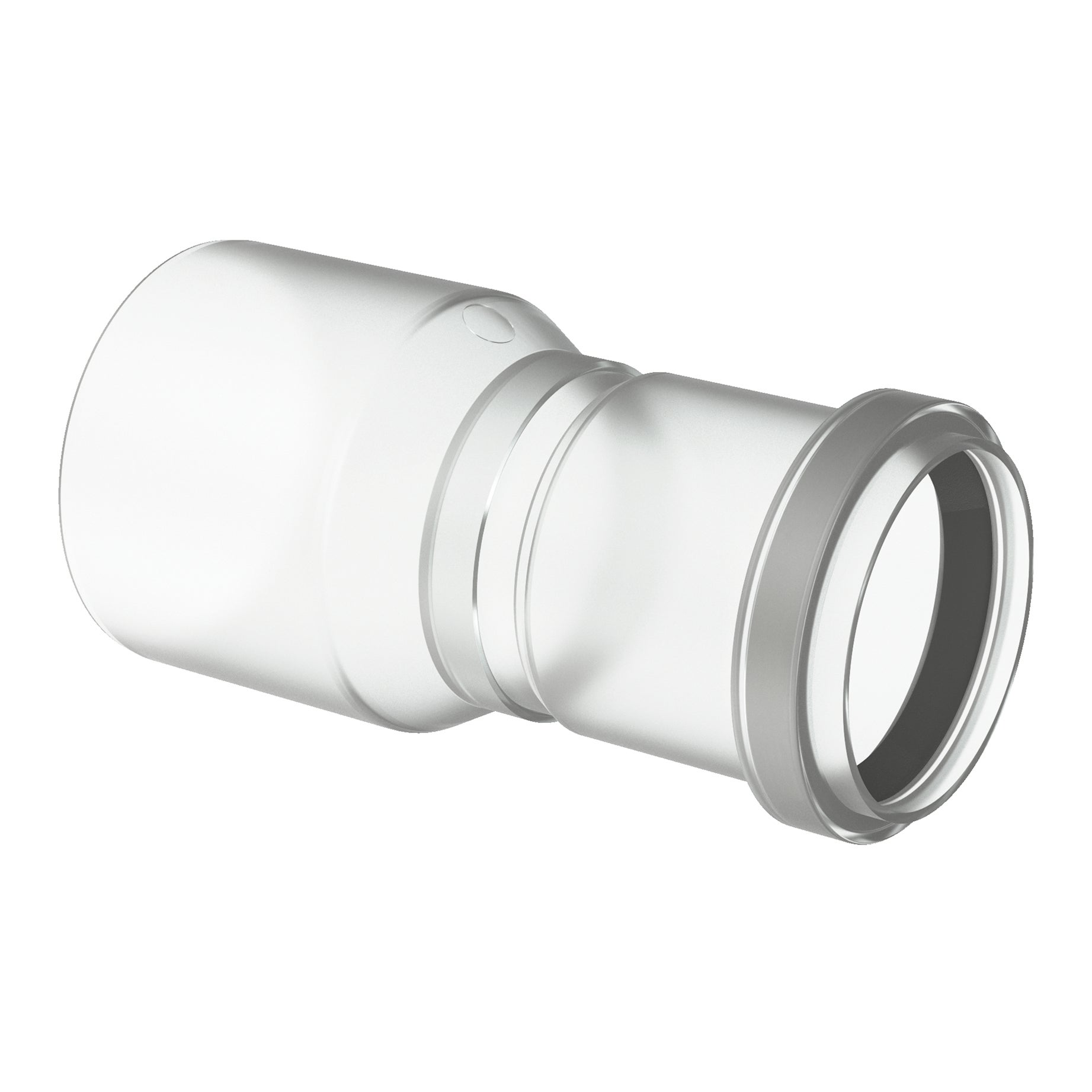 Riduzione. Deve essere utilizzata esclusivamente nei sistemi fumari C53(x), B23(P), per il collegamento del condotto di scarico verticale il solo da Ø 60 mm alla curva 87/90° da Ø 80 mm, di supporto allo stesso, nel tratto inferiore del camino.. Necessaria per ridurre da DN80 mm a DN60 mm il condotto di scarico fumi verticale inutbato, sia in PP flessibile uia PP rigido