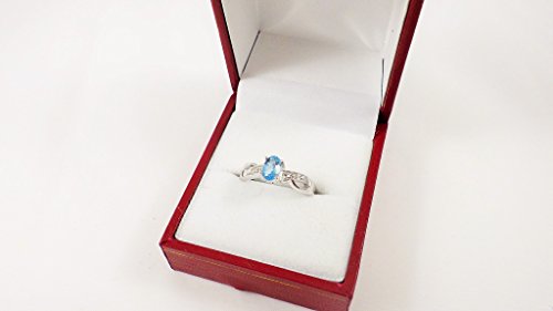 La Collezione Anello di Topazio Azzurro: Un bellissimo anello di fidanzamento di argento e topazio blu set diamanti sulle spalle regalo perfetto, Misura anello 15