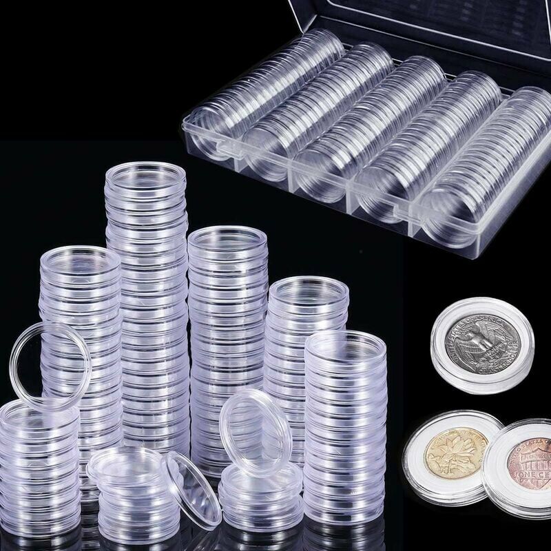 Colore come mostrato Dimensioni: 12 x 18,5 x 3,8 cm Peso: 100 g 【Capsula per monete】 - Realizzata in plastica di alta qualità, è antipolvere, antiossidante e liscia al tatto. Il portacapsule cristallino ti consente di avere una visione chiara della moneta.【Buona tenuta】 - Capsula portamonete trasparente, antiossidante e antipolvere, protegge le parti funzionali ed è un buon regalo per gli amanti delle monete.【Facile da usare】- Ogni portacapsule ha una piccola scanalatura sul bordo esterno che è semplice e facile da aprire. Il portacapsule protegge la parte da eventuali danni. 【Guarnizione interna in schiuma】 Dotato di 100 dischi interni in schiuma, puoi scegliere il disco interno giusto in base alle tue esigenze e utilizzare il disco interno nel portacapsule per evitare che la parte scivoli e si graffi. la guarnizione interna in schiuma si adatta a 4 diverse dimensioni, 20 mm, 25 mm, 27 mm, 30 mm. Se il tuo articolo ha un diametro inferiore a 20 mm, puoi anche tagliarlo in base alle