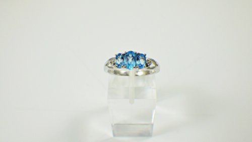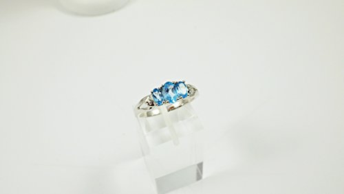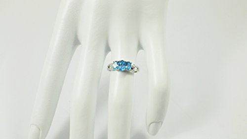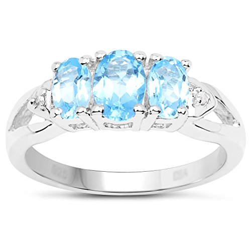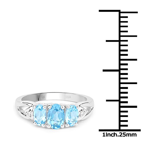 La Collezione Topazi Azzurro: Anello di Argento con 3 Pietre Topazio azzurri set Diamanti nelle spalle, anello di compromesso Taglia dell'anello 13,5