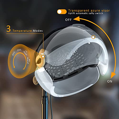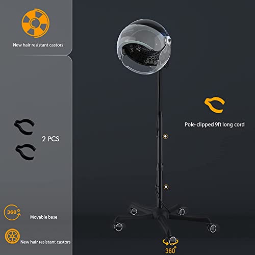 Colliford Caschi per l'asciugatura, Asciugacapelli Professionale Portatile, Cuffia Asciugacapelli, Casco Asciugacapelli da Casa, 1650W, Asciugacapelli Ionico, Altezza 85-150 cm (Nero)