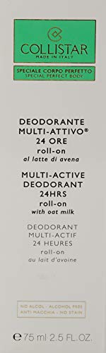 Collistar Deodorante multi-attivo 24 ore roll-on, Efficacia deodorante a lunga durata, Con latte di avena ed estratto di camomilla, Adatto a tutti i tipi di pelle, 75ml
