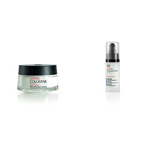 Collistar Linea Uomo Crema Antirughe Rivitalizzante, Previene le Rughe e Rimpolpa Quelle Esistenti dall'interno, 50 ml & Attivi Puri Uomo Collagene Antirughe Rigenerante, 30 ml