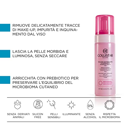 Collistar-Mousse Detergente Illuminante, Emolliente Lenitiva Viso, Rimuove Delicatamente Tracce di Make-up, Impurità e Inquinamento dal Viso, Lascia la Pelle Morbida e Luminosa, senza Seccare, 180 ml