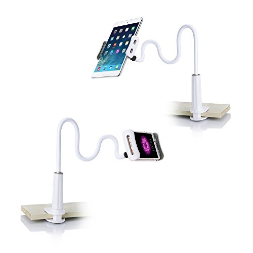 flessibili Lunghe braccia, questo Cell Phone Tablet universale clip Holder stand sono flessibili Lunghe braccia, letto possono essere agganciate a qualsiasi scrivania, testata del letto, sedia, armadio a muro, soddisfare le vostre esigenze qualunque cosa sei a casa o in viaggio, ti permette di goderti il tuo telefono tablet ovunque.