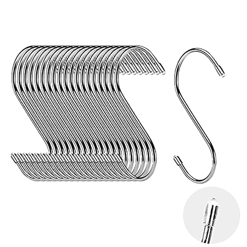 Colmanda 20pcs S Ganci, Inox Ganci a Forma di S, Forma Ganci Cucina Acciaio Appeso per Utensili da Cucina, Ufficio, Bagno, Armadio, Officina, Garage, Casa (9cm)
