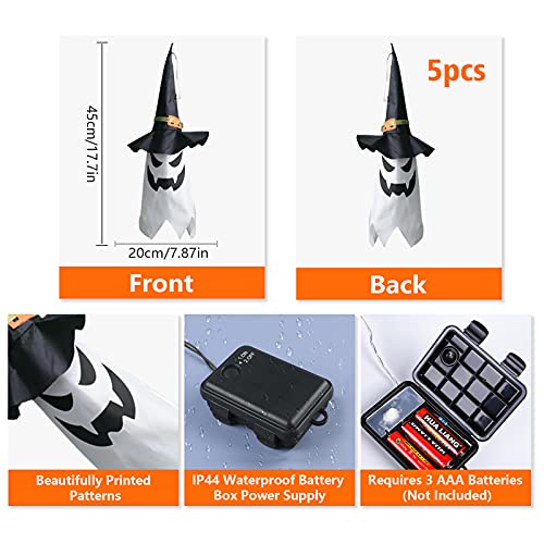 Colmanda Fantasma Decorazione Halloween, 5 Pezzi Halloween Hanging Illuminato Fantasma Cappello da Strega, Decorazioni di Halloween per Esterni Interno Giardino Cortile Albero Feste