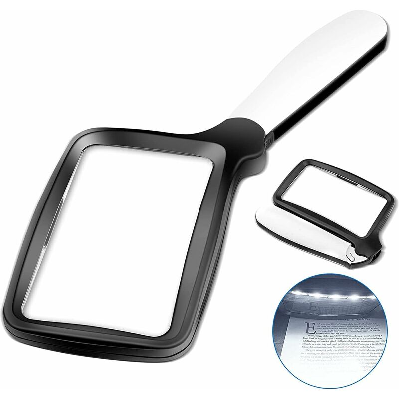 50 LED ultra luminosi - Lente d'ingrandimento a mani libere con 50 LED ultra luminosi ed efficienti dal punto di vista energetico, la lente d'ingrandimento con luce e supporto ha 50 LED ultra luminosi integrati, che forniscono un'area illuminata più uniforme e luminosa per ridurre gli occhi sollecitazioni dovute a luce irregolare o fioca, ma sono anche più efficienti dal punto di vista energetico rispetto ai led tradizionali. Questa lente d'ingrandimento può ingrandire i caratteri fini fino al 400% senza distorsione ottica. Perfetto per leggere libri, giornali, riviste, ecc. [Area di visualizzazione extra ampia] Area di visualizzazione fino a 25,4x15,2 cm/10"x6". La grande lente d'ingrandimento è appositamente progettata per adattarsi al percorso della persona illuminata, copre un'ampia area di visualizzazione senza dover spostare la lente d'ingrandimento molte volte progettata per gli anziani. Inoltre, questa lente d'ingrandimento illuminata con gambe e cordino da collo è ergonomica