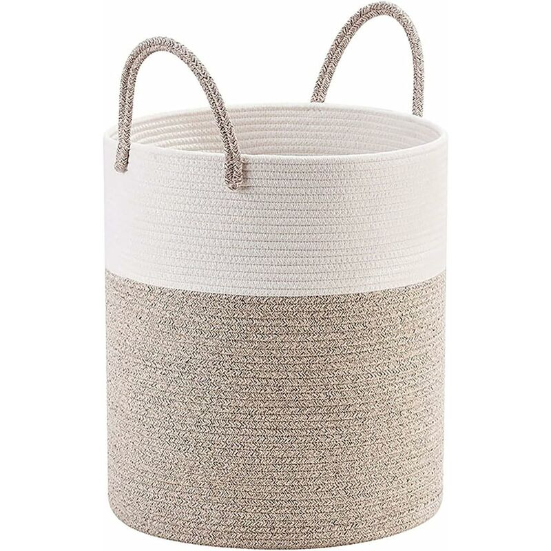 Realizzato in corda di cotone morbida, traspirante, robusta e resistente. Non graffia il pavimento e non è dannoso per la pelle. Cestini alti 38x50 cm per bagno, lavanderia, camera dei bambini, camera da letto, soggiorno, sala giochi. Il grande cesto della biancheria ha una grande capacità e funziona bene come un grande cesto portaoggetti per giocattoli, coperte, asciugamani, vestiti sporchi, biancheria da letto, lenzuola, cuscini e animali imbalsamati. Design pieghevole per una comoda conservazione. Avrà una forma migliore quando lo riempirai di coperte o asciugamani o quando lo stirerai. Il cesto della biancheria ha una capacità di 58 L, perfetto per i carichi familiari tra un lavaggio e l'altro. L'ampio design superiore consente di inserire facilmente la biancheria sporca. Doppie maniglie rinforzate per un facile spostamento da una stanza all'altra.