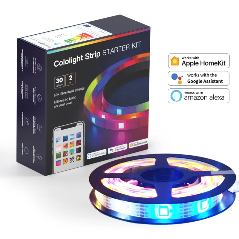Cololight LED Light Strip Kit Smart RGB Ambient Lighting Rope Music Sync Compatible with Siri Alexa Google Assistant 30 LEDs/M