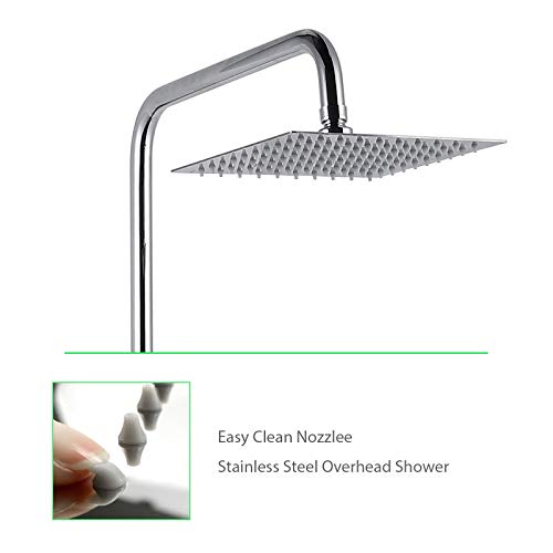 Soffione regolabile: Soffione quadrato ha 20 x 20cm, abbastanza grande per l'effetto di pioggia. Soffione rotante 360° e angolo regolabile verticale 30°, idoneo per qualsiasi posizione.