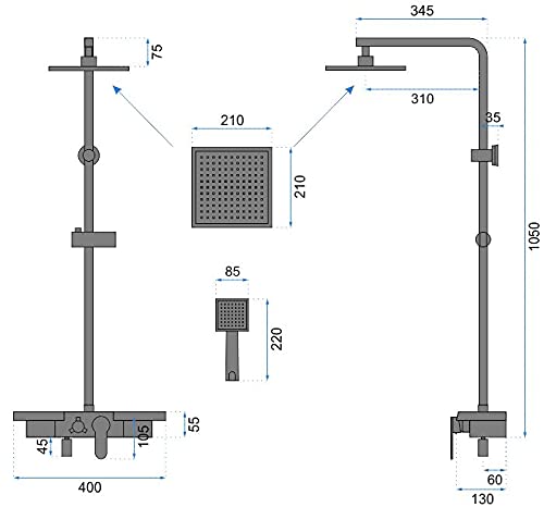 Rea Colonna Doccia SET BRAVO BLACK Sistema Doccia in Ottone per Bagno (Nero)